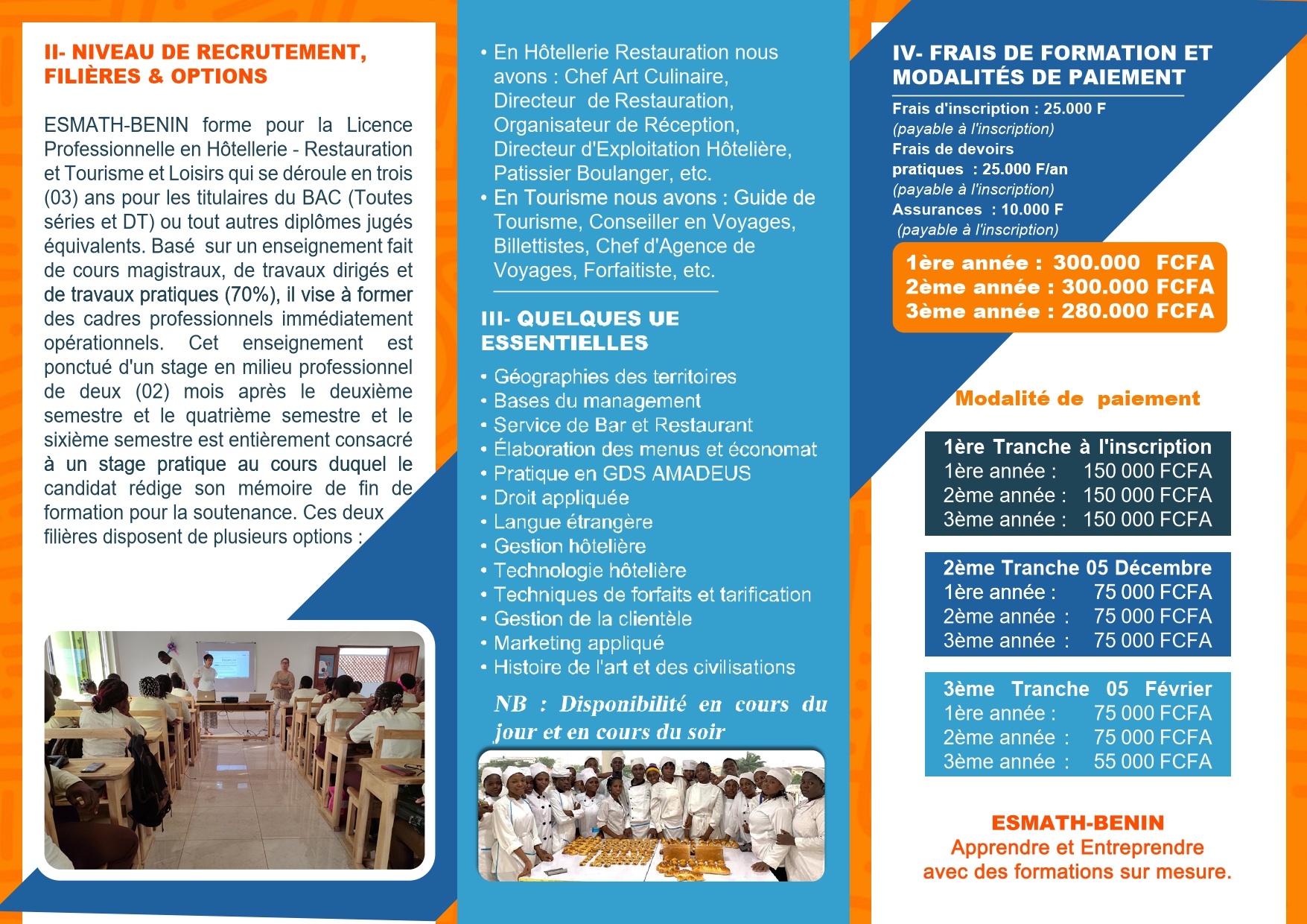 ESMATH BENIN s’inscrit dans une dynamique de professionnalisation, d’innovation pédagogique et de partenariat avec le milieu professionnel, contribuant au développement des compétences et à la valorisation des métiers du tourisme et de l’hôtellerie au Bénin.